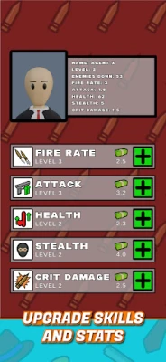 Ponorte sa do akčných úrovní, kde každý krok a každé rozhodnutie má svoju váhu. Očakávajte neúprosné výzvy, ktoré preveria vaše strategické myslenie a reflexy do krajnosti. Odstraňujte ciele s chladnokrvnou precíznosťou a neustále vylepšujte svojho agenta. Každé víťazstvo vás posúva bližšie k tomu, aby ste sa stali neprekonateľným expertom v odbore. S každou misiou rastie vaša sila a stávate sa obávanejším a efektívnejším.