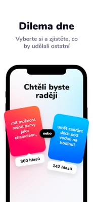 Myslíte si, že viete, čo by ste si vybrali? Vyskúšajte Dilemmaly - Co bys radši? a čelte zábavným aj náročným dilemám. Hrajte s blízkymi, porovnávajte odpovede s miliónmi a objavte viac ako 1000 bezplatných kariet pre hodiny smiechu.