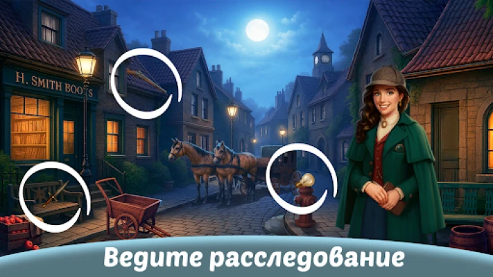 Postupným riešením prípadu budete obnovovať luxusné interiéry, odomykať nové lokácie a ponárať sa hlbšie do tajomstiev Londýna. Plňte denné úlohy, zúčastňujte sa časovo obmedzených udalostí a zbierajte vzácne kolekcie, ktoré vám prinesú hodnotné odmeny. Pre milovníkov temnejšej atmosféry je pripravená aj ľahká nádielka mystiky – šepot minulosti, záhadné znamenia a nevysvetliteľné náhody menia toto dobrodružstvo na skutočne magickú skúsenosť. Hra Поиск предметов: Дело Эмили ponúka komfort pre krátke i dlhé herné relácie, podporuje hru offline a pre maximálne pohodlie sú dostupné aj možnosti bez reklám.