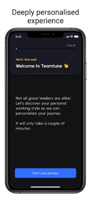 Teamtune je kľúčová aplikácia, ktorá vám pomôže posunúť vašu líderskú cestu. Je ideálna pre každého, kto to myslí vážne s vlastným osobným a profesionálnym rozvojom a rastom.